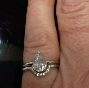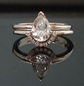 Stunning 1.07ct pear cut diamond engagement ring in 18ct White gold. Complimented with a handmade round 0.09ct diamond curved diamond wedding band,
