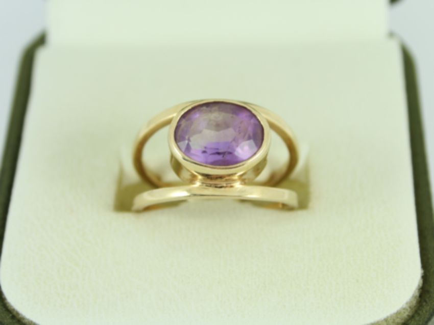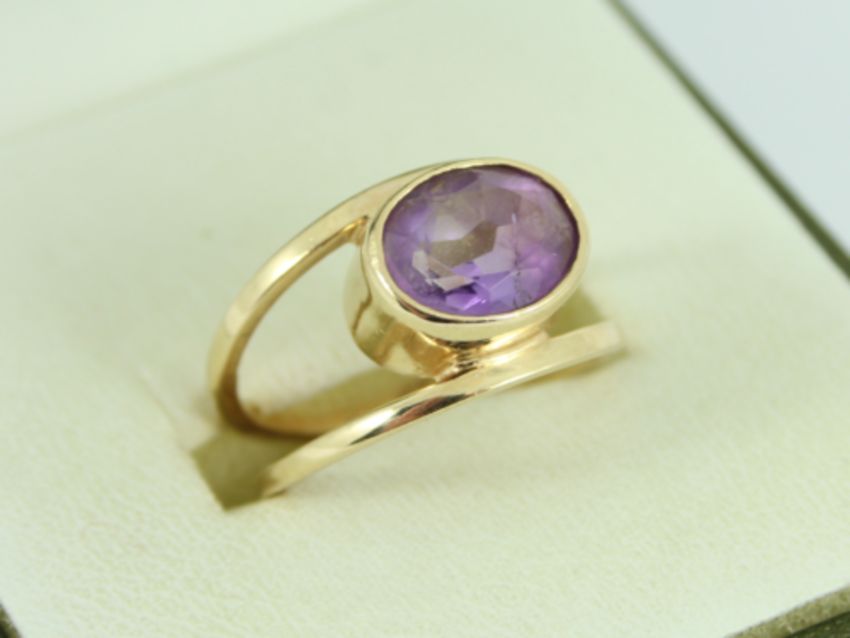 Here for sale, we have this magnificent ladies ring made from 9ct yellow gold and set with a lovely oval facet cut amethyst stone.