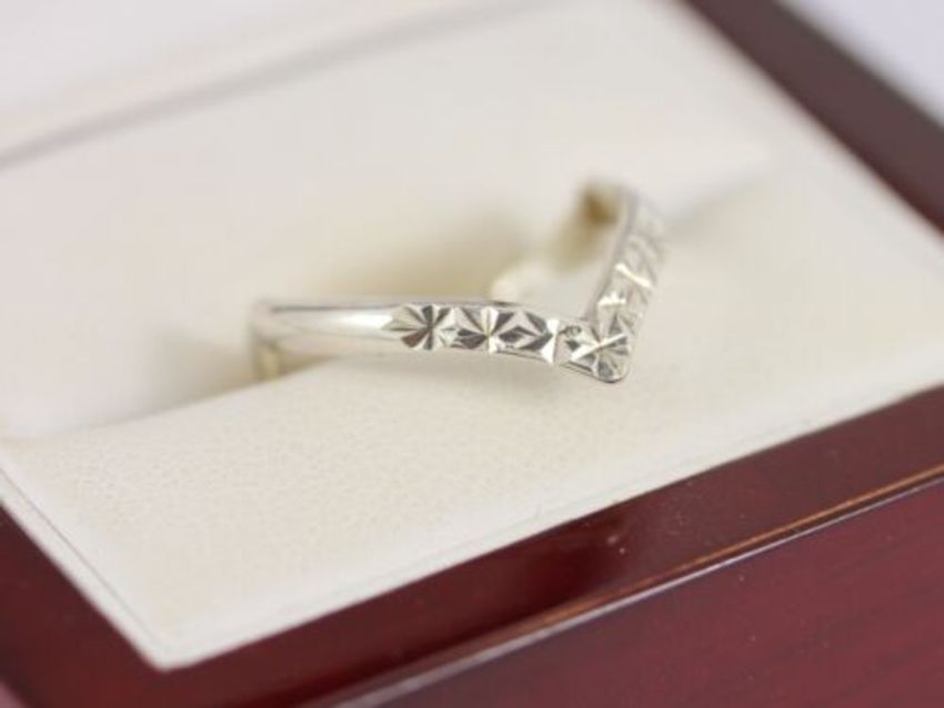 Here for sale we have this beautiful V shaped ring, made from sterling silver with a gorgeous style and design.