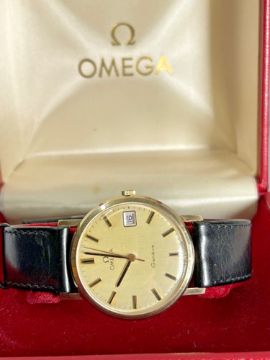 Vintage 9k yellow gold Omega Automatic Geneve Watch With Golden Case & Black Strap**