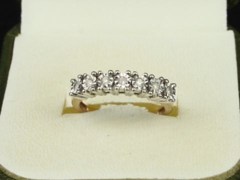 Here for sale, we have this magnificent ladies half eternity ring. Seven stunning brilliant cut diamonds weighing a total of 0.12ct set on a lovely 9ct yellow gold shank.