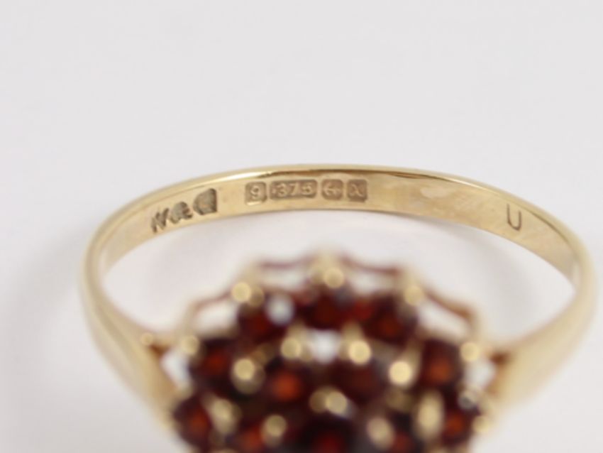 Here for sale, we have this magnificent ladies cluster ring made from 9ct yellow gold and set with lovely garnet stones.