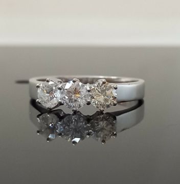 Show your eternal love with this 0.87carat diamond ring. Three round brilliant cut diamonds sit together on a polished 18ct claw set band.