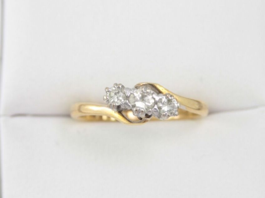 Here for sale we have this stunning ladies trilogy ring, three beautiful diamonds weighing a total of approx 0.30ct set in a crossover mount on an 18ct yellow gold shank.