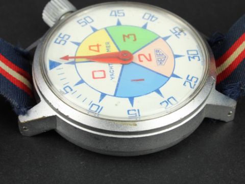 Here for sale, we have this magnificent 1972 Heuer Yacht timer Ref. 503.512 DIAL Original dial, with large highly-visible colour-coded central five minute register and red hands. CASE Measuring 52.5mm (excluding crown) x 62mm made from unpolished stainless steel with matching original caseback. MOVEMENT Manual Swiss-manufactured 7-jewel ref. 503.512 Heuer stopwatch movement. Watch runs with no issues, second hand resets slight to the left of 12 o'clock. Comes with original strap and box. |