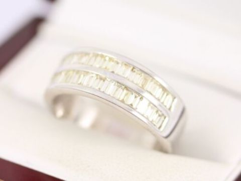 Here for sale we have this magnificent ladies eternity ring, thirty three baguette cut diamonds channel set over two rows in a lovely 18ct white gold band.