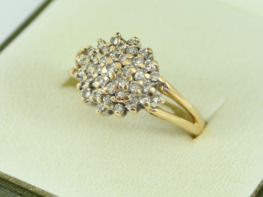 Here for sale, we have this magnificent ladies cluster ring made from 18ct yellow gold and set with lovely diamonds weighing a total of 0.50ct.