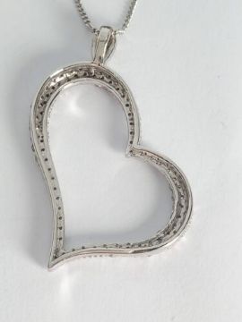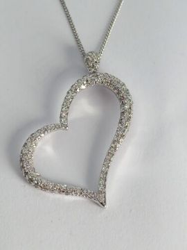 It's easy to lose your heart to this exceptionally beautiful diamond heart pendant. The majestic shape of the handcrafted tiffany style heart is adorned Natural Quality Diamonds and set in 18K white gold.