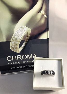 Gorgeous Ceramic & Diamond ring in a lovely shade of grey.