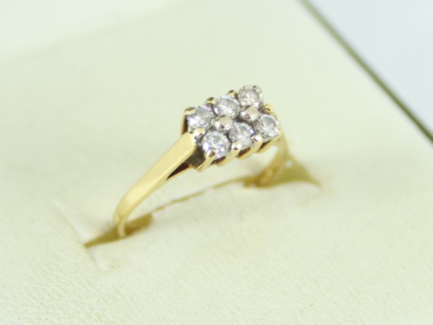 Here for sale, we have this magnificent ladies cluster ring. Six brilliant cut diamonds weighing a total of approx 0.25ct set on a lovely 18ct yellow gold shank.