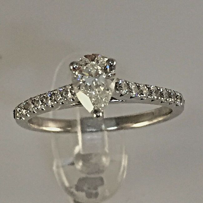 Diamond information: Cut - Pear-shape, Colour - D Clarity - VS2,