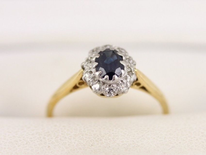 Here for sale we have this magnificent ladies halo ring, a gorgeous oval facet cut sapphire surrounded by ten brilliant cut diamonds set on a lovely 18ct yellow gold shank.