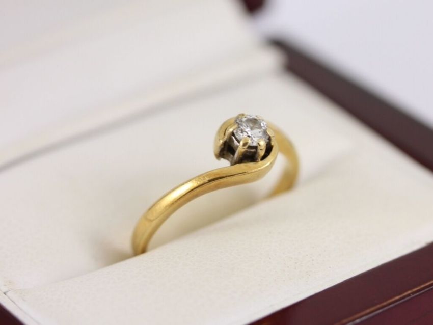 Here for sale we have this magnificent ladies solitaire ring, a stunning brilliant cut diamond in a crossover mount set on a lovely 18ct yellow gold shank.