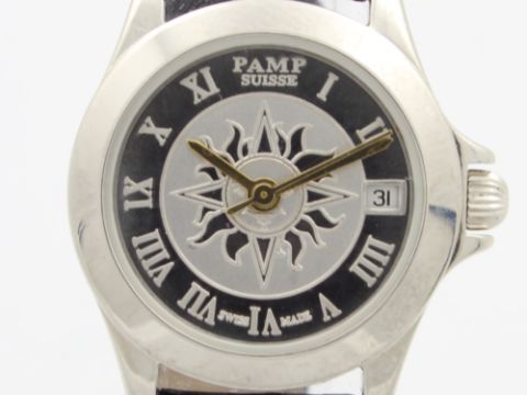 A very unique and rare ladie's timepiece by Pamp Suisse featuring an 18K solid white gold case and dial.