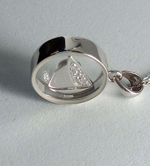 A lovely Diamond floating pendant. The inside has a yacht with diamonds going down the ships sale.
