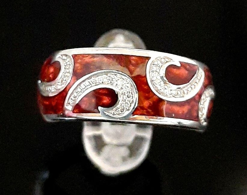 The diamonds form four swirl affects and finished with highly polished Stirling silver. Width 7mm