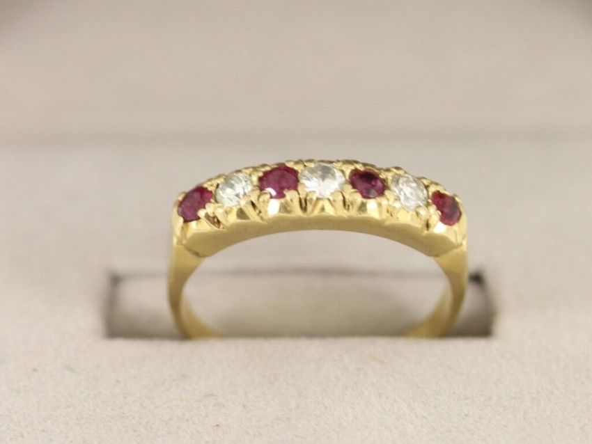 Here for sale we have this magnificent ladies ring, four stunning circular facet cut rubies separated by three brilliant cut diamonds weighing a total of 0.30ct set on a lovely 18ct yellow gold shank.