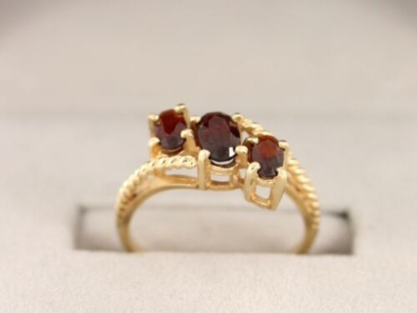 Here for sale we have this magnificent ladies trilogy ring, three gorgeous oval facet cut garnets set on a lovely 10K gold shank.