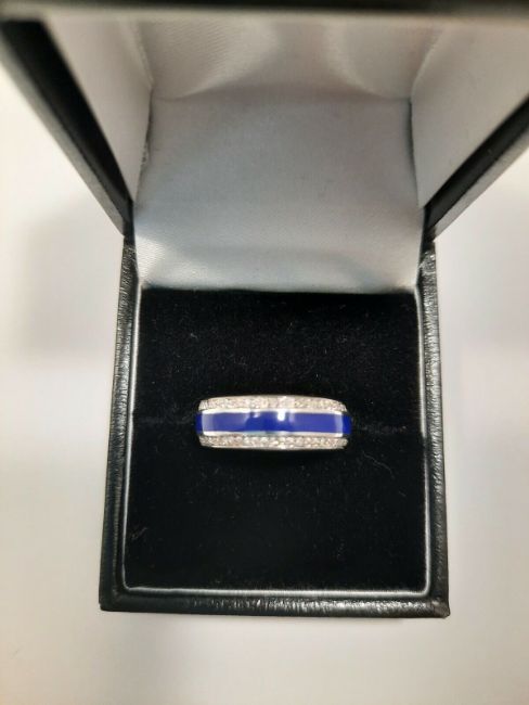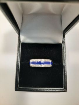 The diamonds are evenly spaced around the edge of the band and finished with a highly polished Stirling silver Width 5mm