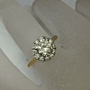 This beautiful diamond halo engagement ring will woo her with its simple yet luxurious look. Featured in the centre is a stunning 0.90CT solitaire, intensified by 0.20CT halo setting . The stones' round cut are beautiful handcrafted four claw setting.