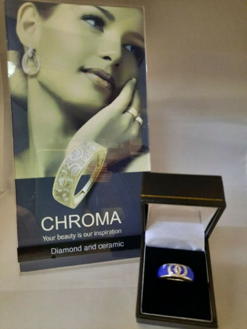 Gorgeous Ceramic & Diamond ring in a lovely shade of royal blue.