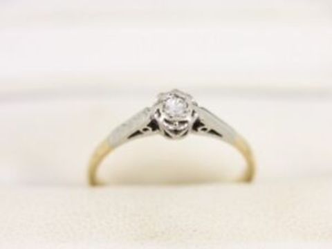 Here for sale we have this gorgeous ladies solitaire ring, a stunning brilliant cut diamond weighing a total of 0.07ct set on a lovely 18ct yellow gold shank.