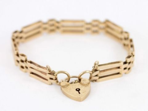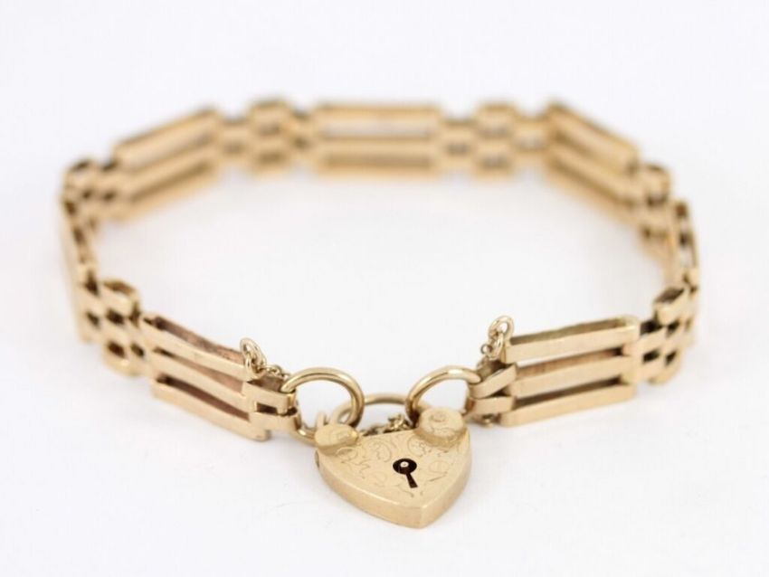 Here for sale we have this magnificent vintage ladies gate bracelet, with a delightful heart locket clasp. Made from 9ct gold