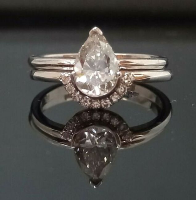 Stunning 1.07ct pear cut diamond engagement ring in 18ct White gold. Complimented with a handmade round 0.09ct diamond curved diamond wedding band,