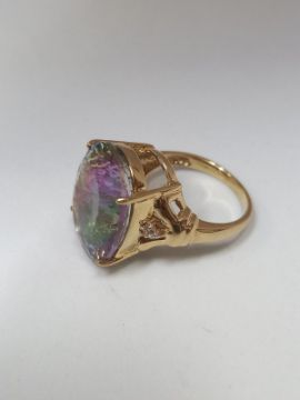 stunning ring! The large oval Mystic Topaz is sure to be eye-catching and the perfect statement piece to add some color to any outfit. The chunky 9ct yellow gold band adds a touch of boldness and makes a statement of its own.