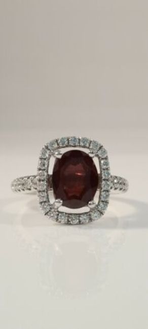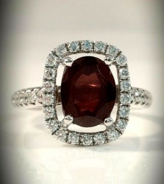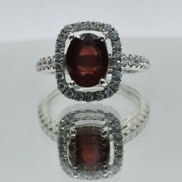 Representing luxury and beauty, this stylish gemstone ring is simply sensational. With a design that includes a red central garnet and a beautiful diamond four claw studded surround.