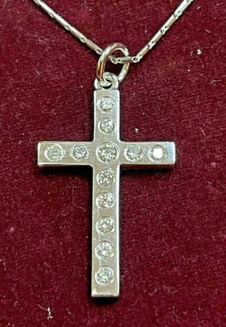 The cross has twelve natural 1.30ct Diamonds encased in solid 18ct white gold.
