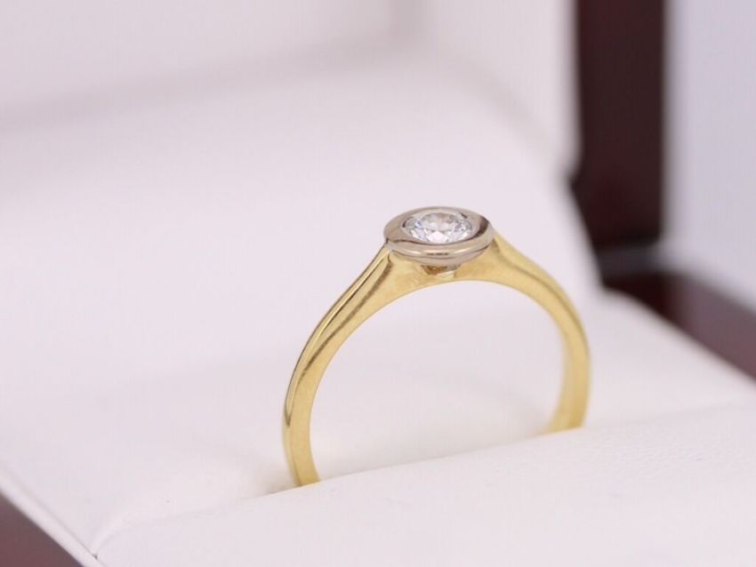Here for sale we have this magnificent ladies solitaire ring, the brilliant cut diamond weighing approx 0.20cts collet set on an 18ct yellow gold shank.