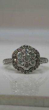 This gorgeous cluster ring, that is encrusted with approx 0.75ct of natural sparkling diamonds, all set in a cool white 9ct gold setting.
