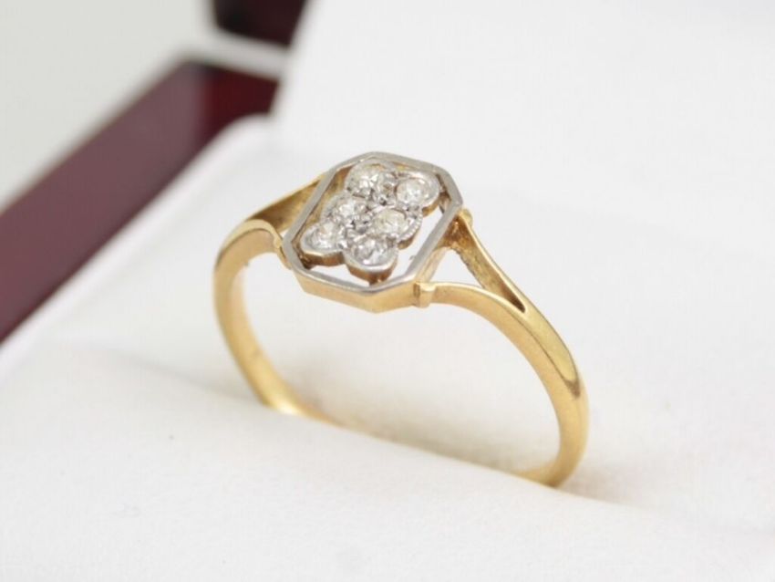 Here for sale we have this magnificent ladies cluster ring, six lovely diamonds set in platinum on an 18ct yellow gold shank.