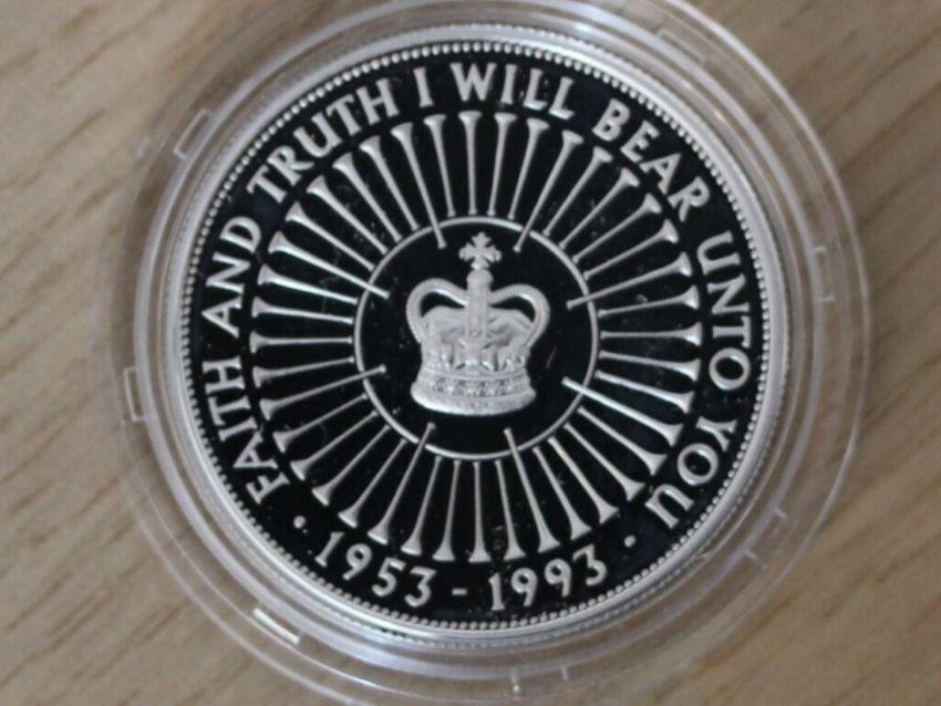 In 1993, to commemorate the 40th Anniversary of the Queens Coronation, The Royal Mint released a Limited Issue £5 Five Pound Silver Proof Coin struck in solid .925 Sterling Silver.