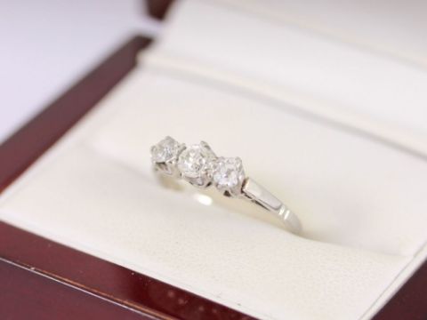 Here for sale, we have this gorgeous ladies trilogy ring, three stunning old cut diamonds weighing a total of 0.40ct set in a lovely platinum shank.