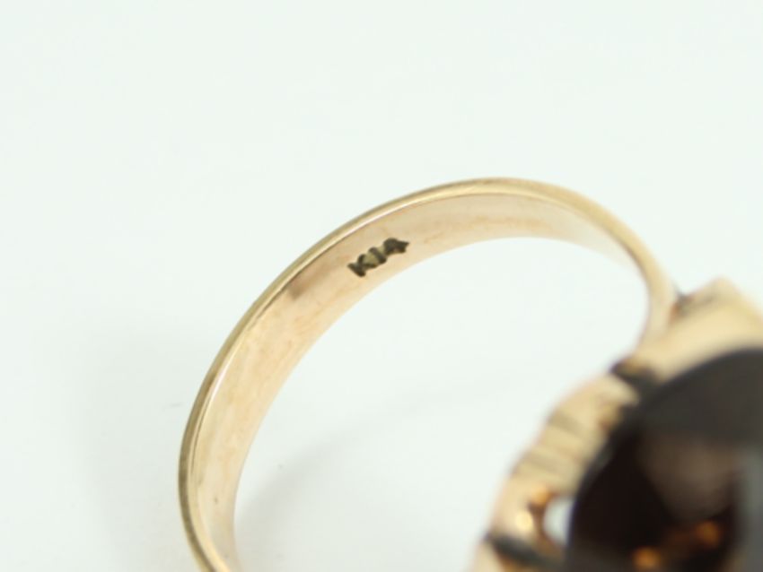 Here for sale, we have this magnificent ladies ring made from 14k yellow gold and set with a lovely smoky quartz stone.