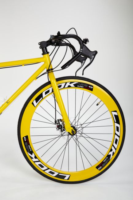 YELLOW STREET BIKE WITH 21 GREAR, BRAKE DISKS, KICK STAND, COOL THIN TYRES