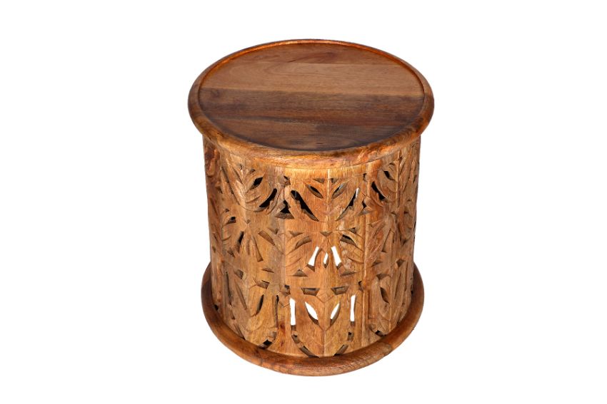 NATURAL MANGO WOOD HAND-CARVED SIDE TABLES X 5