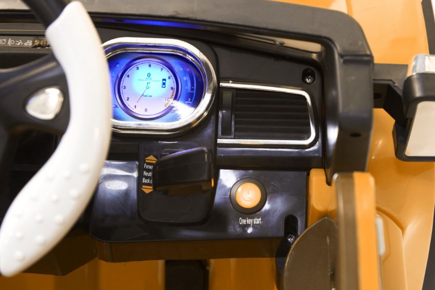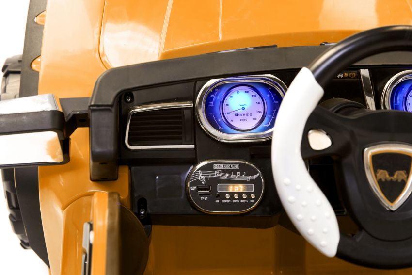 Working lights, aux/music/story player, rocking mode, remote for parental control, doors open, 4 x Shock Absorbers