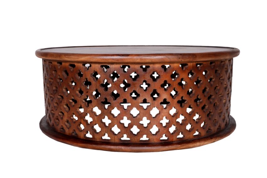 MANGO WOOD FLORAL COFFEE TABLE IN TEAK BROWN - ND0019 X 5
