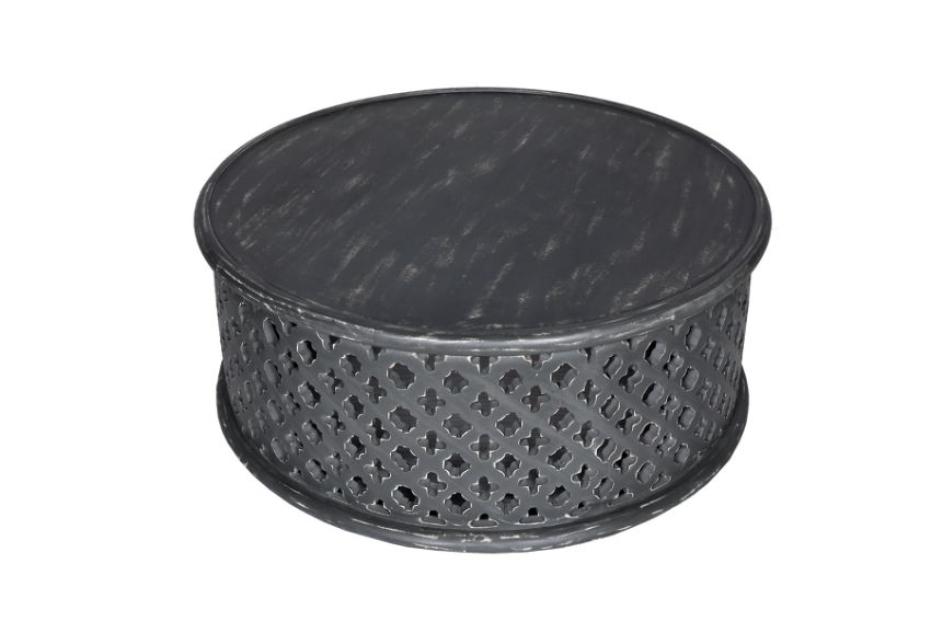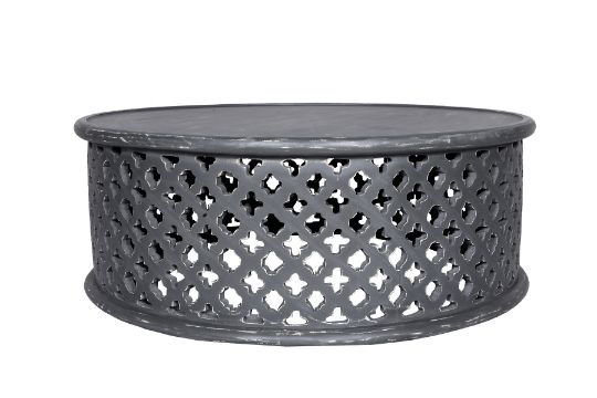 MANGO WOOD FLORAL COFFEE TABLE IN GREY DISTRESSED - ND0019 X 5