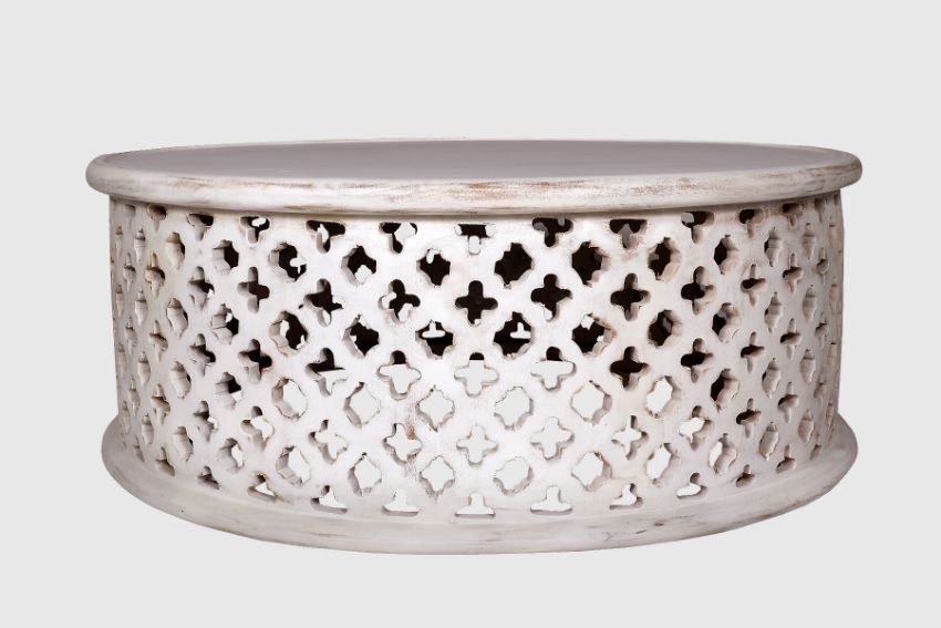 MANGO WOOD FLORAL COFFEE TABLE IN WHITE DISTRESSED - ND0019 X 5