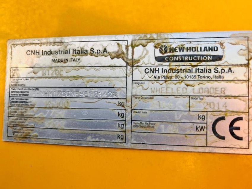 NEW HOLLAND W170C 4WD LOADING SHOVEL *YEAR 2014* C/W REVERSE CAMERA