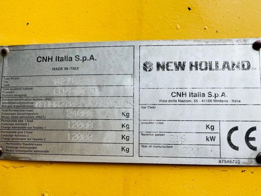 NEW HOLLAND W270B 4WD LOADING SHOVEL C/W LOAD MASTER 8000IX