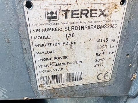 TEREX TA6 4WD DUMPER * YEAR 2011 , 2459 HOURS * C/W ROLE BAR