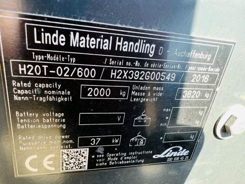 LINDE H20T-02 GAS FORKLIFT * YEAR 2016 * C/W SIDE SHIFT & TINE POSITIONER