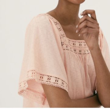 Add some folksy flair to your warm-weather wardrobe with this pure cotton top. Its relaxed fit and wide short sleeves create a breezy feel. The feminine square neckline and sleeves are trimmed with floral embroidery for a touch of boho charm. We only ever use responsibly sourced cotton for our clothes. M&S Collection: easy-to-wear wardrobe staples that combine classic and contemporary styles