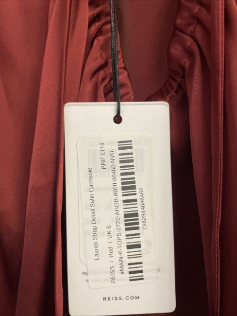 Reiss Red Lauren Strap Detail Satin Camisole Uk.