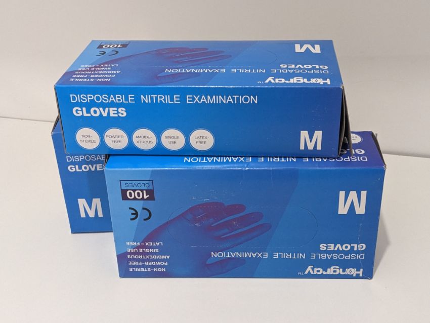 3X Nitrile Gloves, Latex Free, Powder free, 100 Pcs Per Box medium size, Blue 100 glove